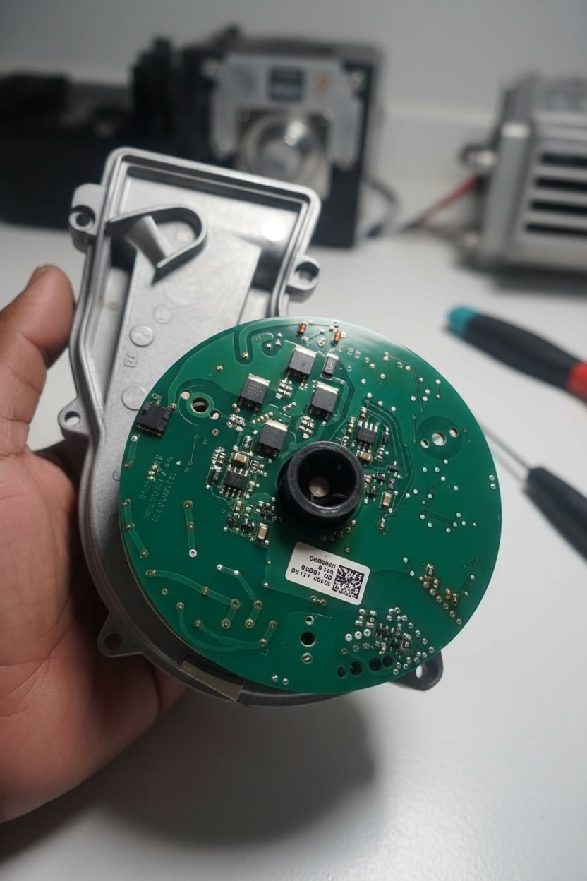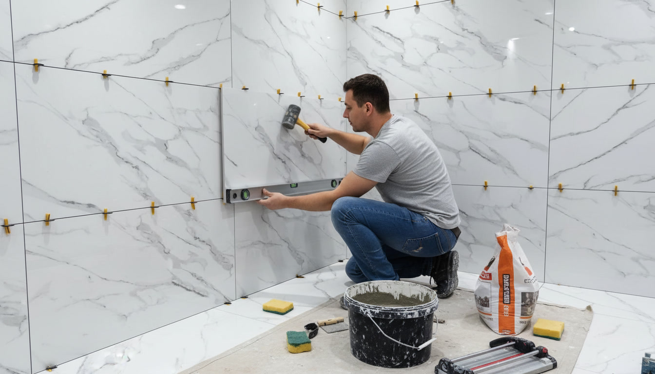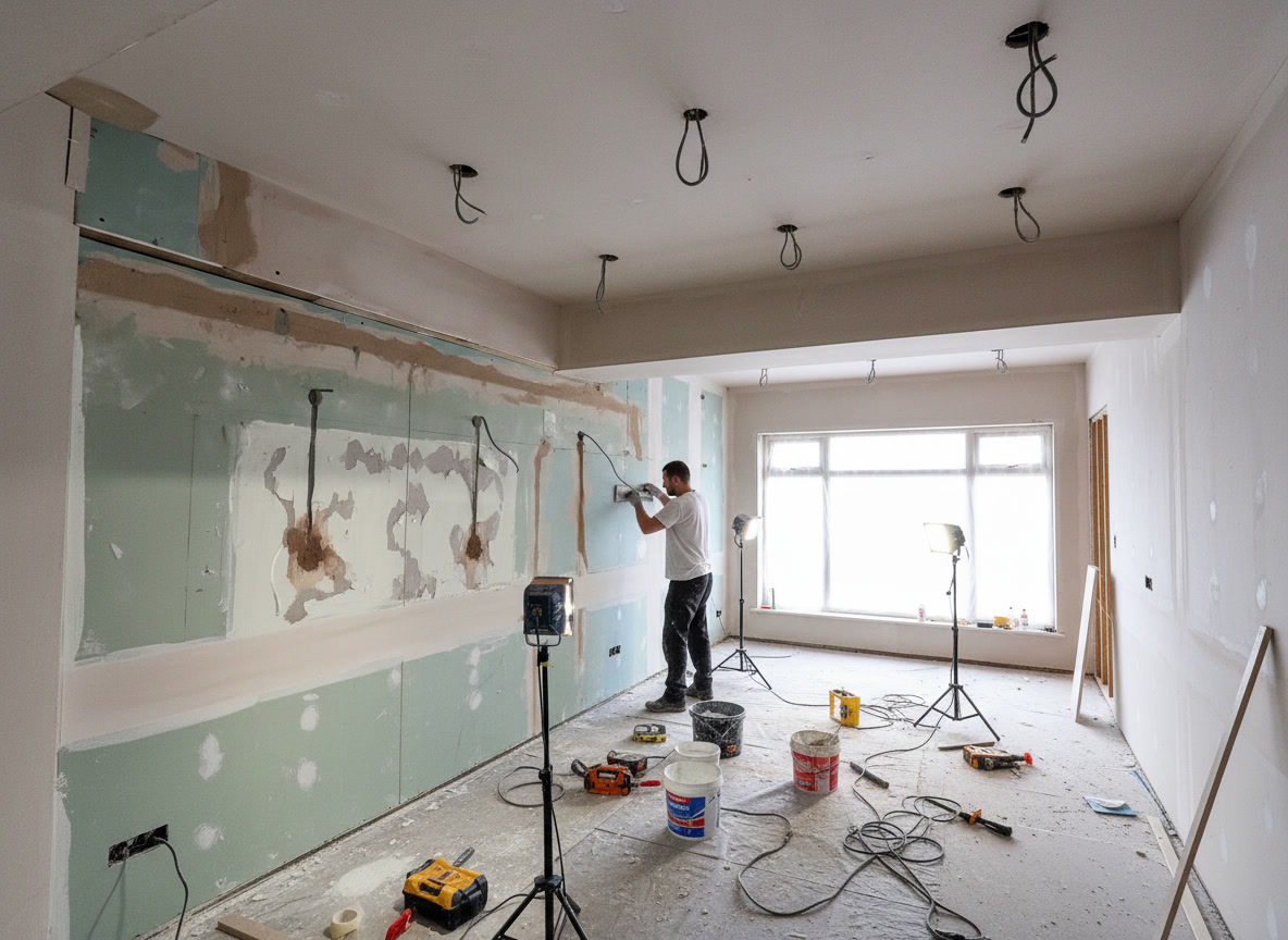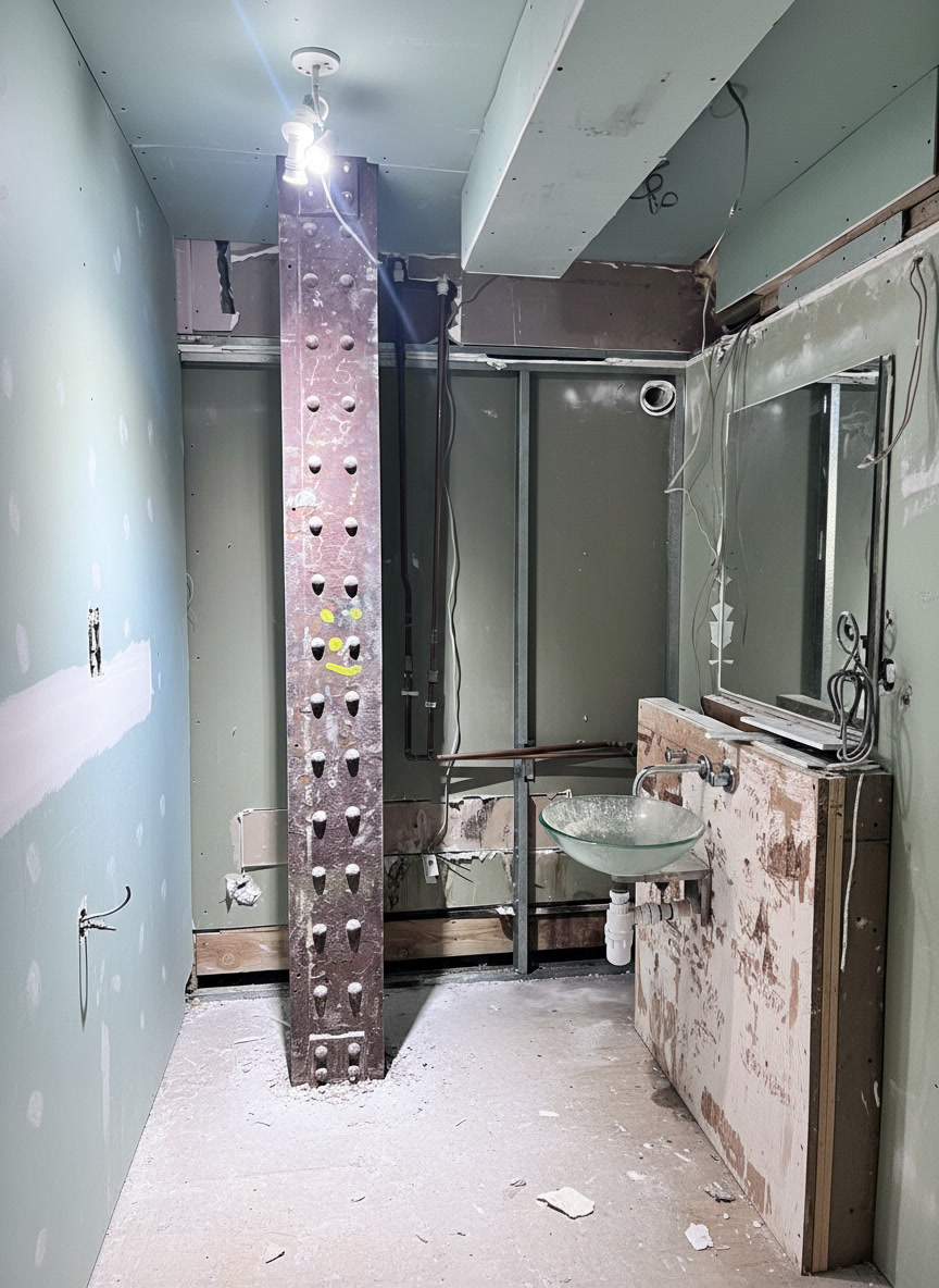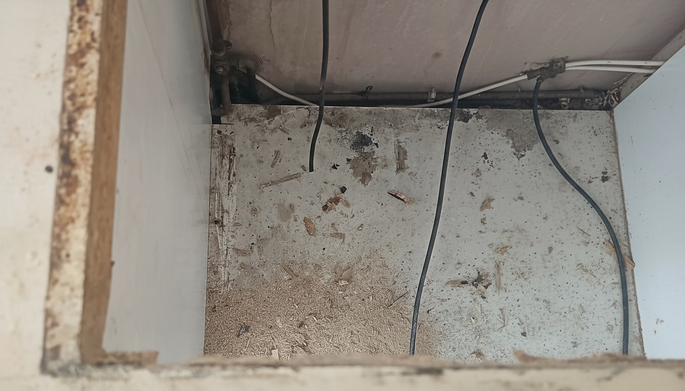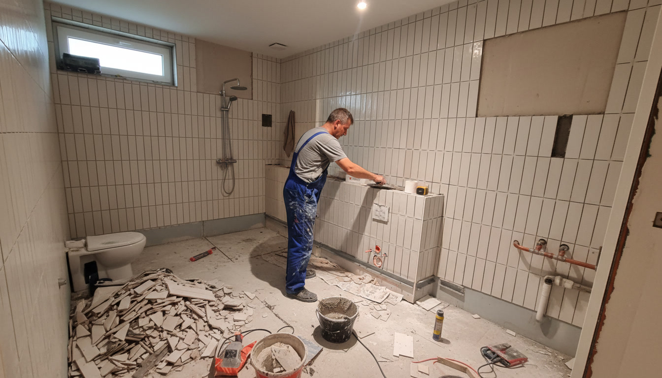 Comparison showing an old, damaged shower valve replaced with a modern chrome mixer control.