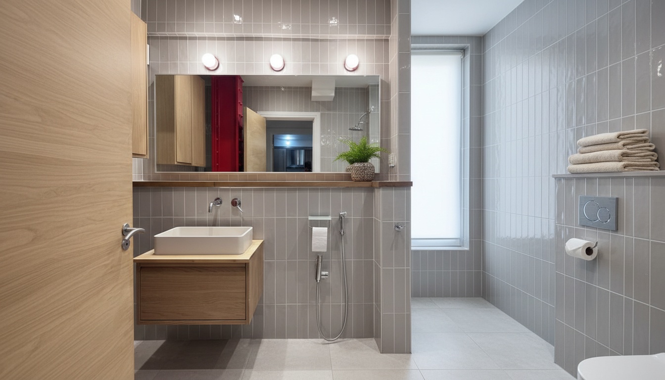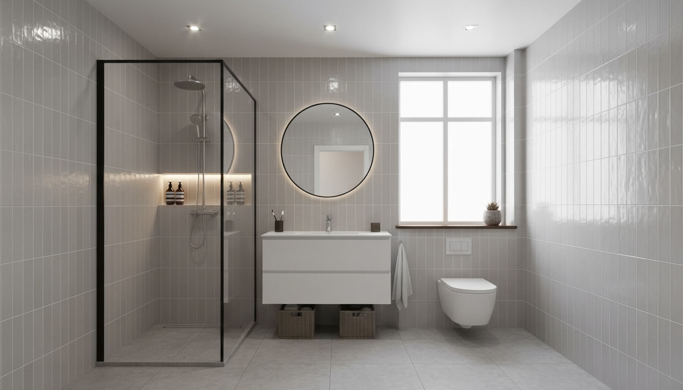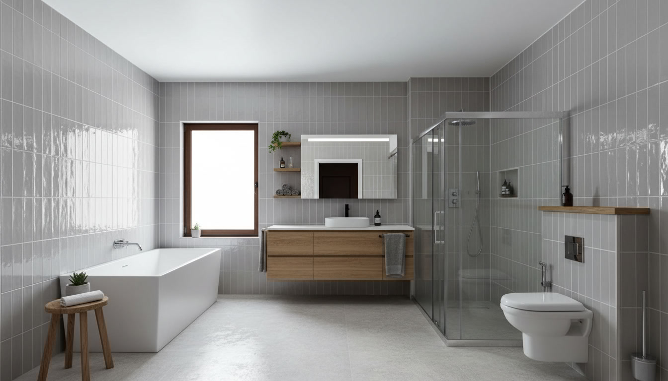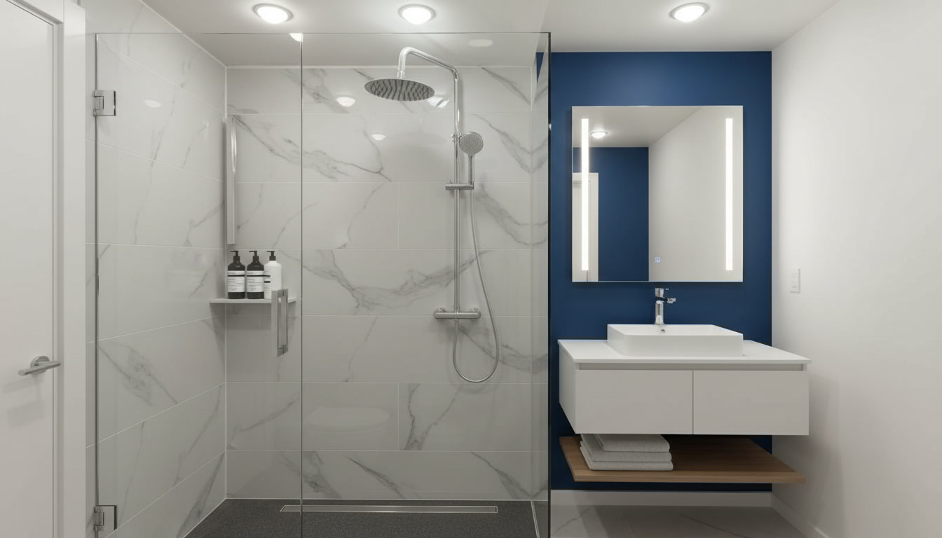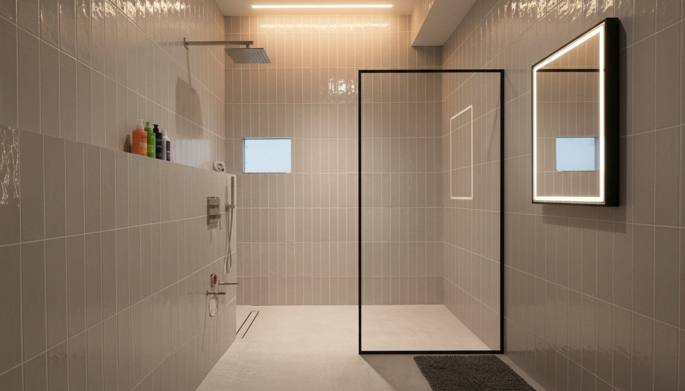 Contemporary Bathroom with Walk-In Shower and Wooden Vanity